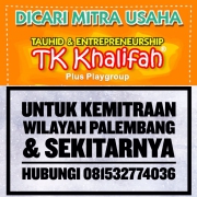 Dicari calon mitra usaha untuk membuka TK Khalifah di wilayah Kota Palembang dan Sumatera Selatan.